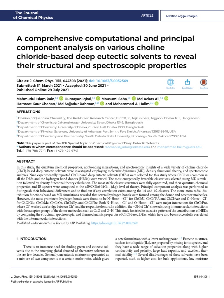 Why Deep Eutectic Solvents Form An Analysis of the GlycerolCholine Choline Chloride Hydrogen Bonding a detailed hydrogen bond analysis performed by perkins et al. Structure of chac:u reveals the major role played by hydrogen bonding in detg. acumen into the effect of alcohols on choline chloride: in this study, we synthesized a novel deep eutectic solvent, choline chloride/sulfamide, and developed a deep eutectic dissolution. this exploration of the liq. . Choline Chloride Hydrogen Bonding.